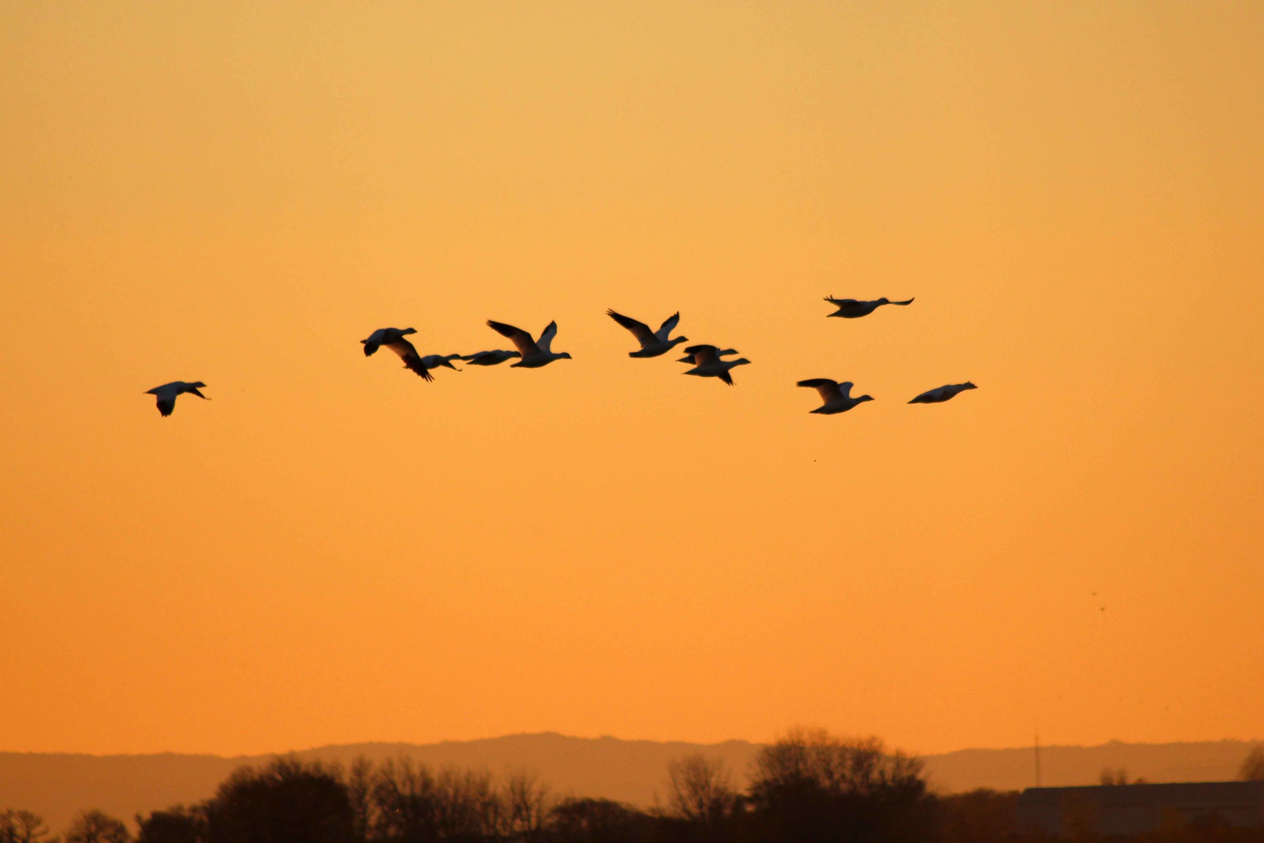 As you stand on a viewing platform in the crisp evening air and watch great flocks of ducks and geese silhouetted against an orange-red sunset sky, it seems like you’ve stepped into another world – even though you’re only a few miles from civilization.