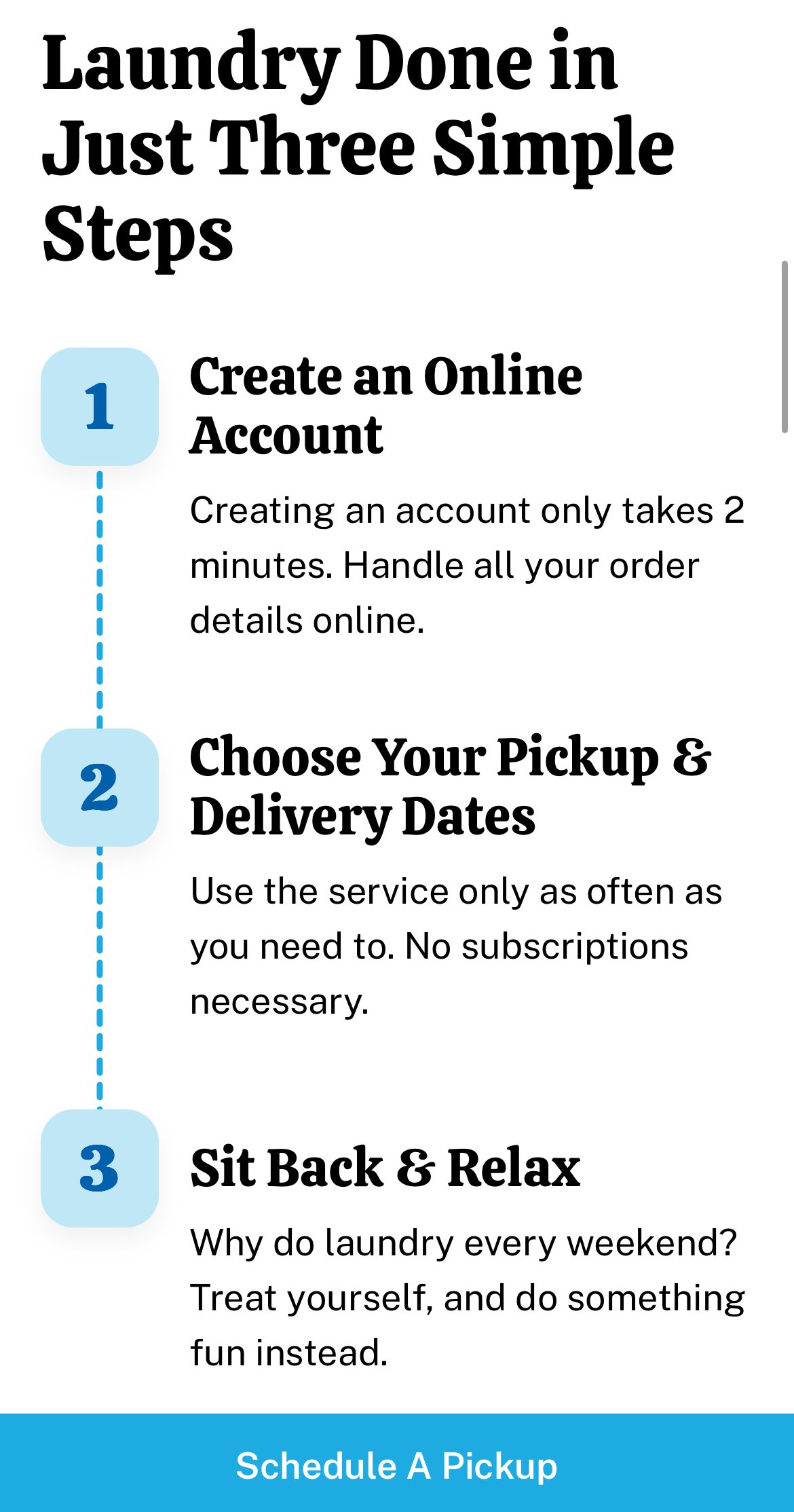 We provide machines of many sizes for self-service laundry. Our wash and fold service also lets you drop off your dirty laundry or schedule a pickup and delivery.